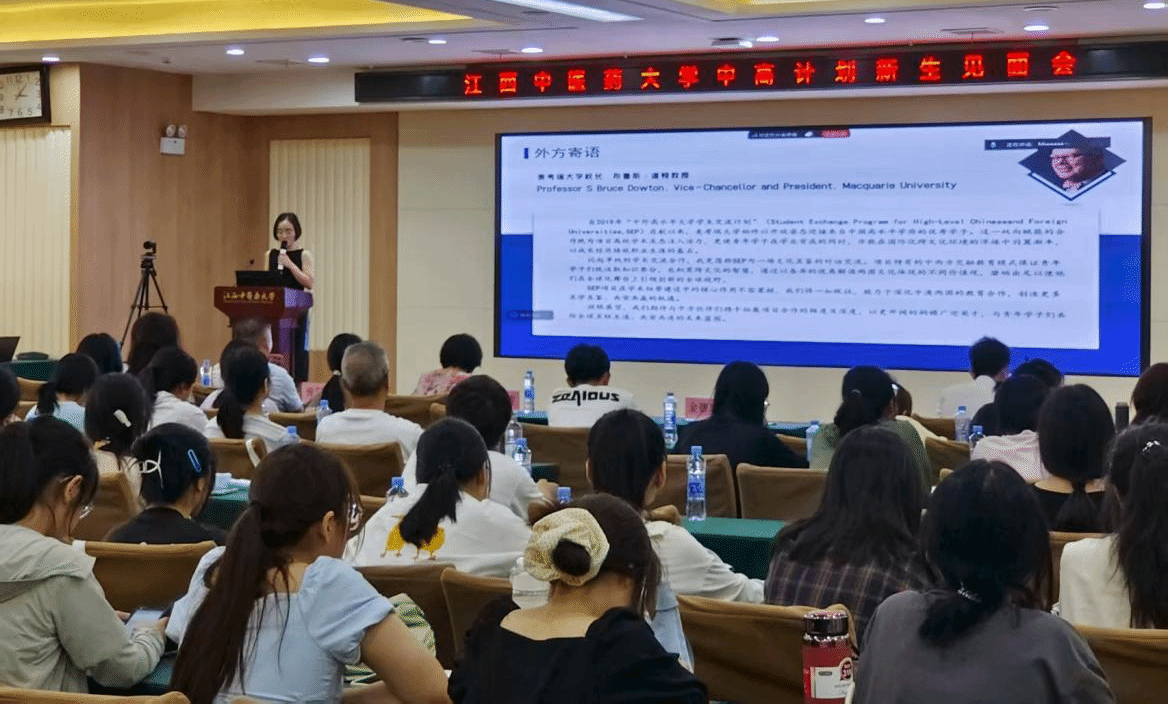 江中新闻网讯(通讯员 童雨婷)9月7日下午,2025级中高计划2+2联合培养专业新生见面会在学校顺利举行。本次见面会延续“中外协同育人才,赋能新生启新程”的核心目标,采用“线下主会场+线上云参会”的形式,吸引了新生及家长的积极参与。见面会由国际交流合作处负责人主持,麦考瑞大学国际部大中华区主任Stella Wang、昆士兰大学工程、建筑及信息技术学部国际事务经理Gracie Jin,江西中医药大学国际交流合作处、计算机学院、药学院相关负责人与老师,以及中高计划全国服务中心的代表共同出席。